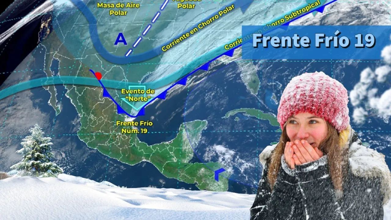 México 23 diciembre._ El Frente Frío Número 19 se extenderá sobre el oriente del Golfo de México y el sureste del país. Ocasionará lluvias torrenciales en Tabasco y Veracruz, intensas en Chiapas y Oaxaca, muy fuertes en Campeche, Quintana Roo y Yucatán.