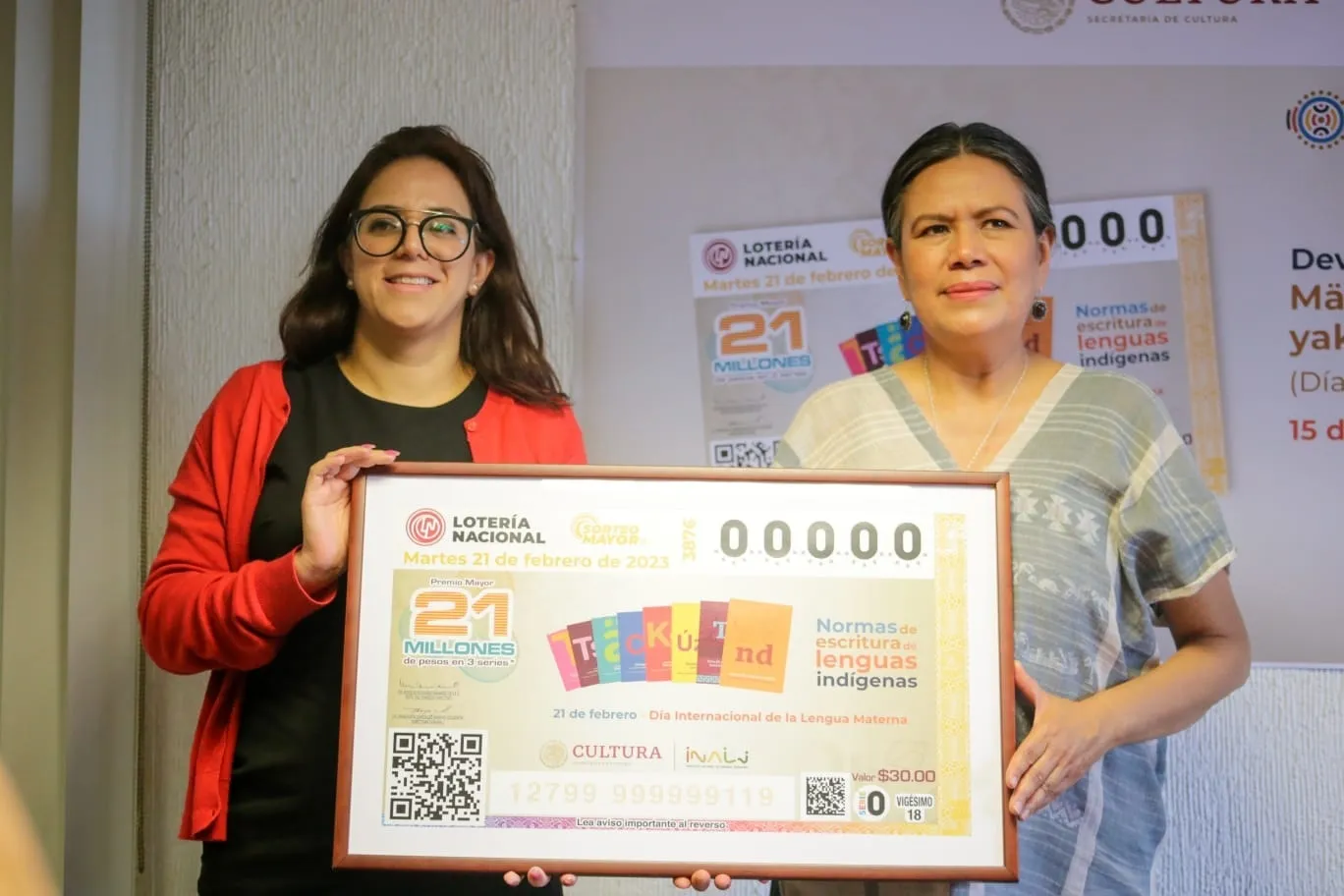 La Lotería Nacional (Lotenal) y la Secretaría de Cultura del Gobierno de México, llevaron a cabo la develación del billete del Sorteo Mayor número 3876, en el marco del Día Internacional de la Lengua Materna (DILM), que se conmemorará el 21 de febrero.