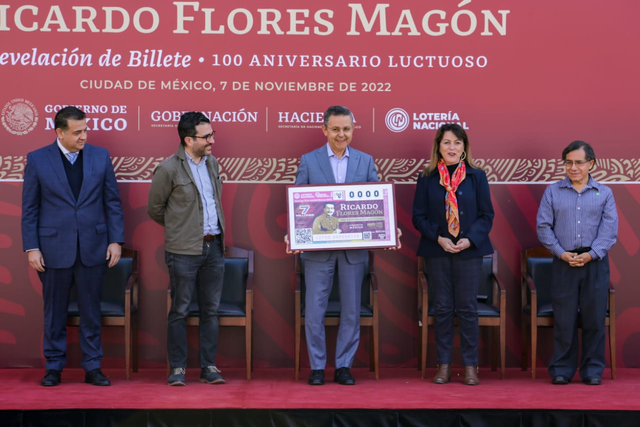 México 7 noviembre._ Este lunes en la Secretaría de Gobernación se develó el billete conmemorativo de la Lotería Nacional en honor al escritor y periodista anarquista, precursor de la Revolución Mexicana, Ricardo Flores Magón, a cien años de su muerte.