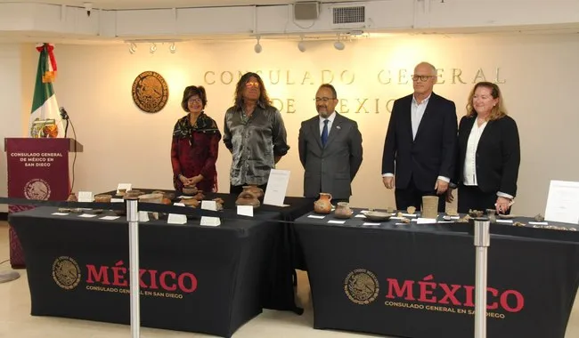 En una ceremonia formal, realizada en la sede del Consulado General de México en San Diego, en Estados Unidos, fueron entregadas al Gobierno de México 65 piezas arqueológicas, las cuales forman parte del patrimonio histórico y cultural de nuestro país.