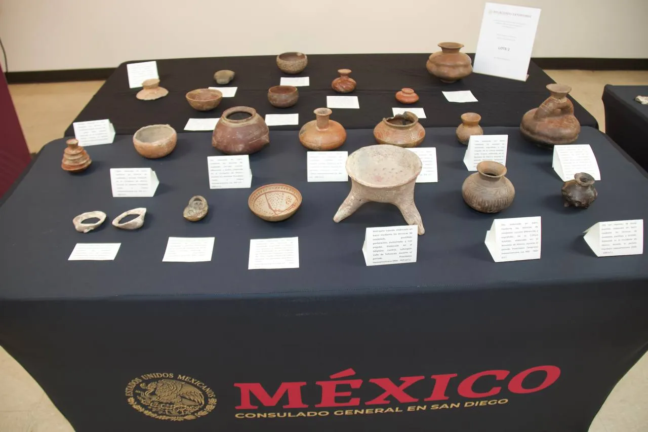 En una ceremonia formal, realizada en la sede del Consulado General de México en San Diego, en Estados Unidos, fueron entregadas al Gobierno de México 65 piezas arqueológicas, las cuales forman parte del patrimonio histórico y cultural de nuestro país.