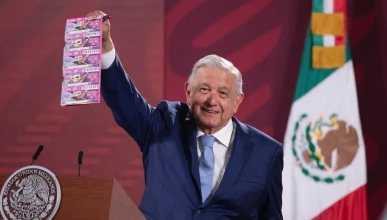 México 25 mayo._ El presidente Andrés Manuel López Obrador presentó el billete de la Lotería Nacional correspondiente al Gran Sorteo Especial 260. Invitó a la