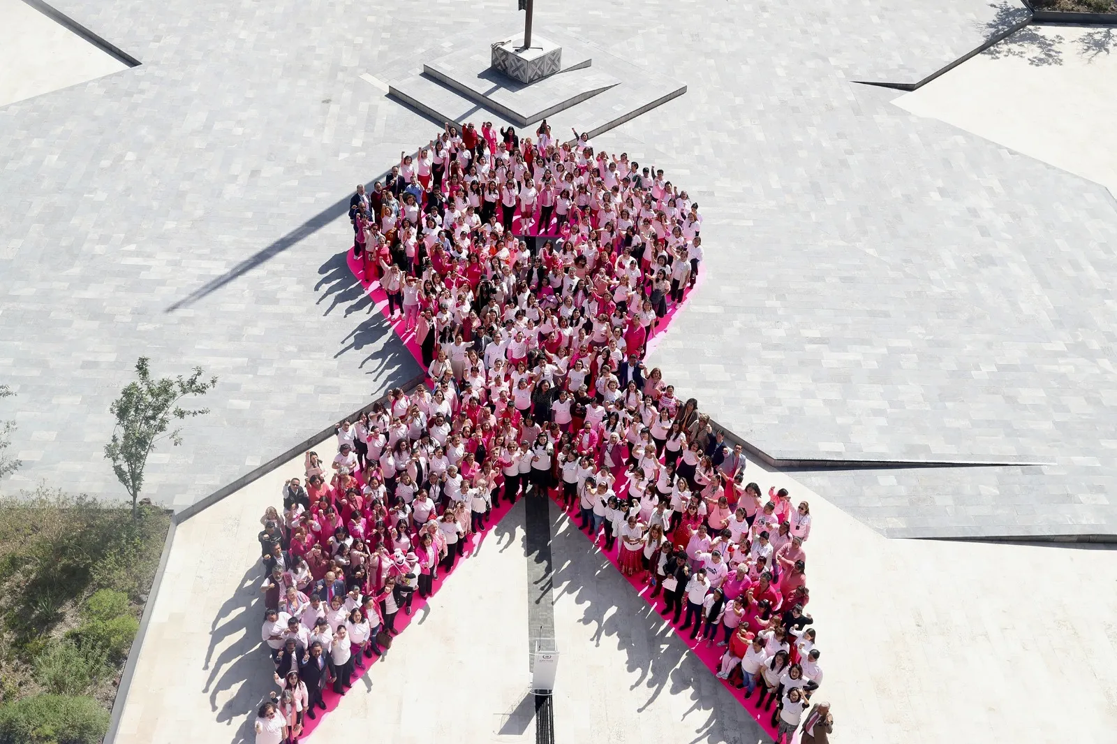 Al grito de “unidas en la lucha contra el cáncer de mama”, diputadas y trabajadoras de la Cámara de Diputados formaron un lazo humano rosa en la Plaza de los Constituyentes de 1917 del Palacio Legislativo, con el propósito de crear conciencia sobre la importancia de prevenir y atender dicha enfermedad.
