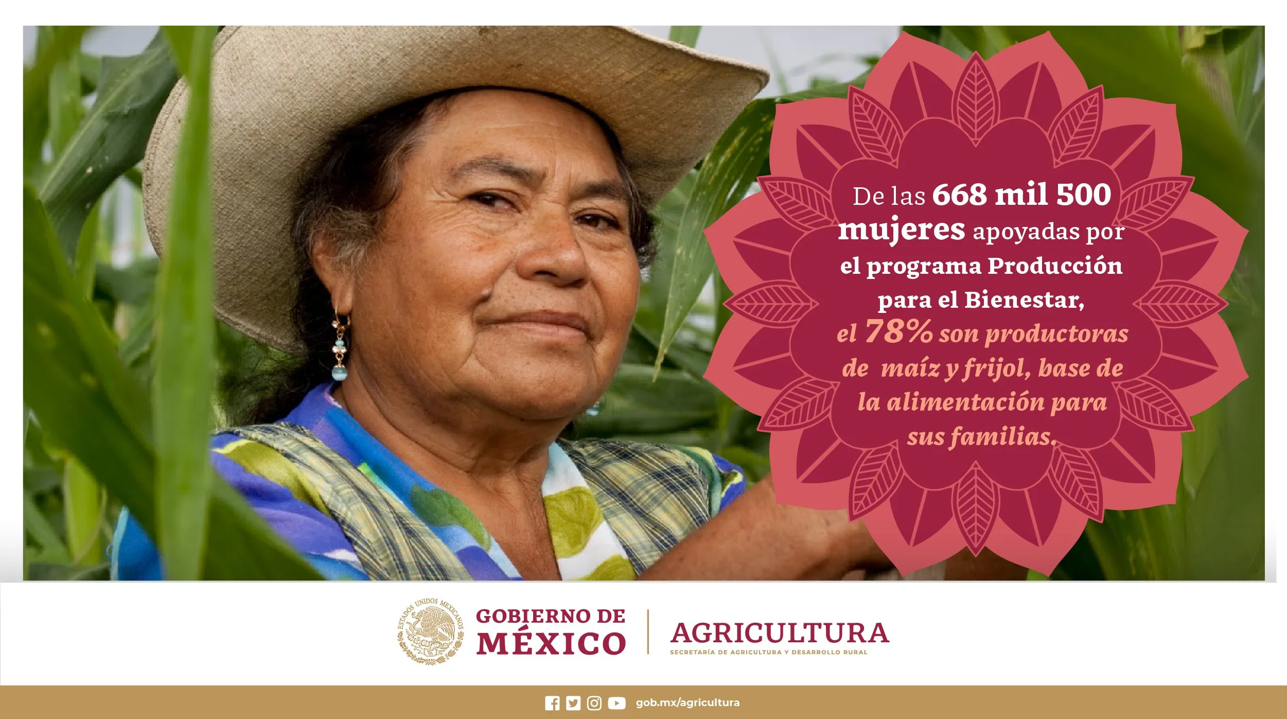 La Secretaría de Agricultura y Desarrollo Rural informó que los apoyos directos que brinda Producción para el Bienestar, de un estimado de 14 mil 462 millones de pesos en 2023, abonan a la autosuficiencia alimentaria y al rescate del campo, y los orientados particularmente a las mujeres representan 33.5 por ciento de ese total: cuatro mil 855.3 millones de pesos.