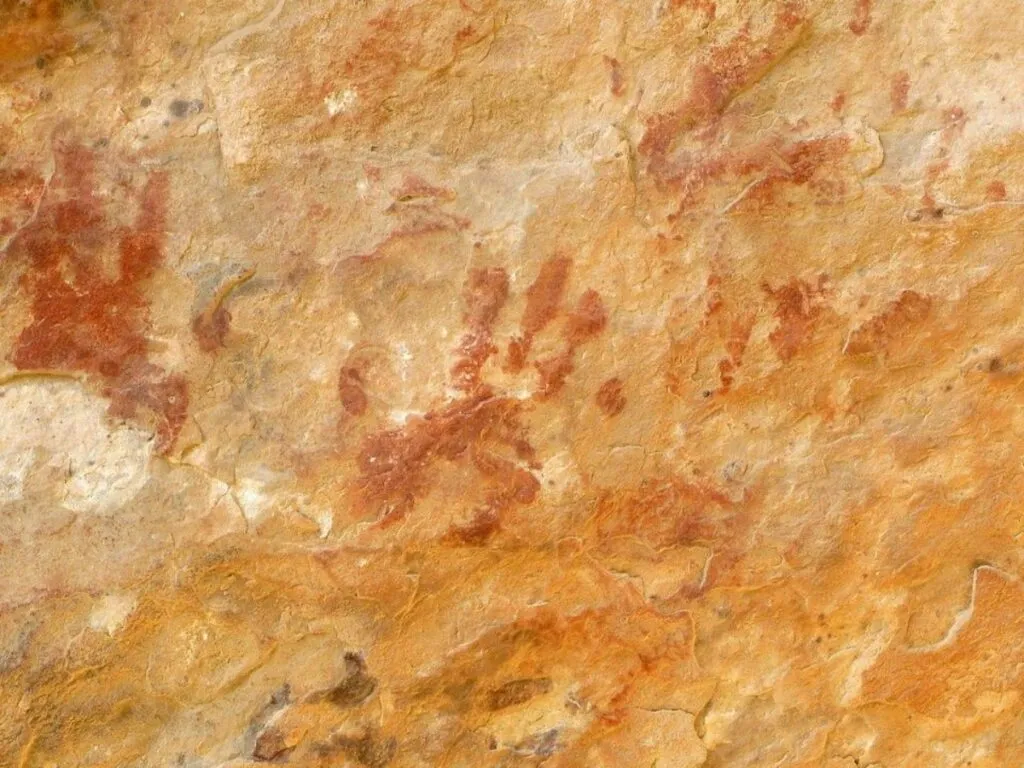 La mano formaba parte de un panel con pintura rupestre (de 5 metros de ancho, 3 metros de altura y 1.5 metros de profundidad), donde hay más de 150 figuras pintadas en las paredes, en colores rojo, amarillo, blanco, negro y naranja. Muchas de las figuras están superpuestas, lo que sugiere que fueron realizadas en diferentes momentos a lo largo de generaciones, entre 5,000 y 500 años antes del presente.