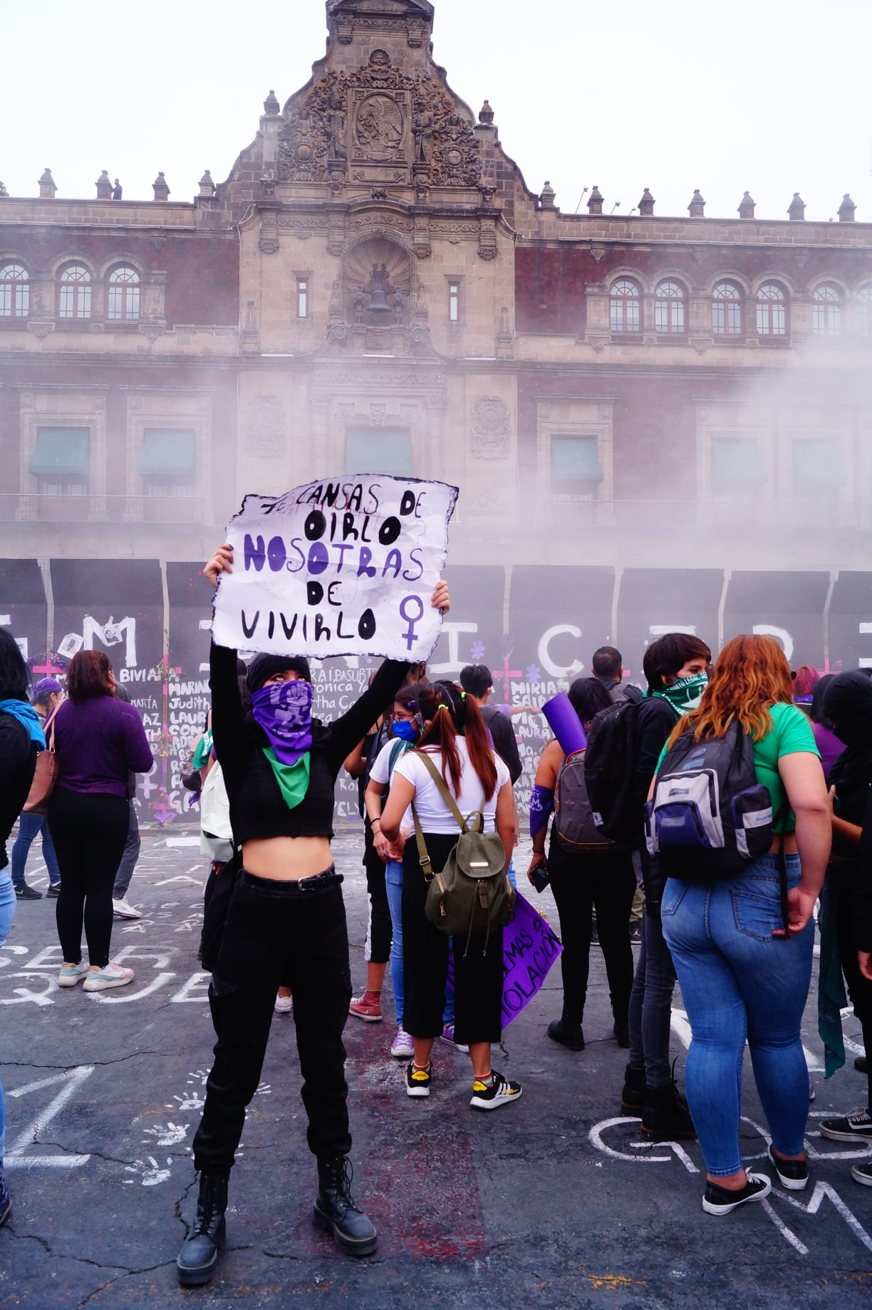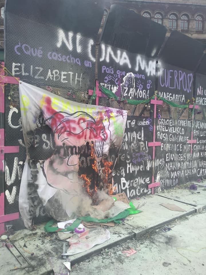 Además de los gases lacrimógenos en contra de las mujeres, también se usaron extintores que impedían la visión de las militantes. Sin embargo, a pesar del gaseo, las manifestantes mostraron gran valentía al acuerpar al bloque negro y continuar apoyando con consignas como: “Un violador no será gobernador”, “que chingue a su madre López Obrador”, “la culpa no era mía ni dónde estaba ni cómo vestía”, “nos tienen miedo”, «pinche gobierno puto».