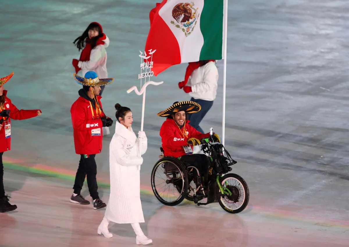 Pyeongchang 2018 Winter Paralympics - Opening ceremony - Pyeongchang Olympic Stadium - Pyeongchang, South Korea - March 9, 2018 - Arly Aristides Velasquez Penaloza of Mexico carries the national flag during the opening ceremony. REUTERS/Paul Hanna