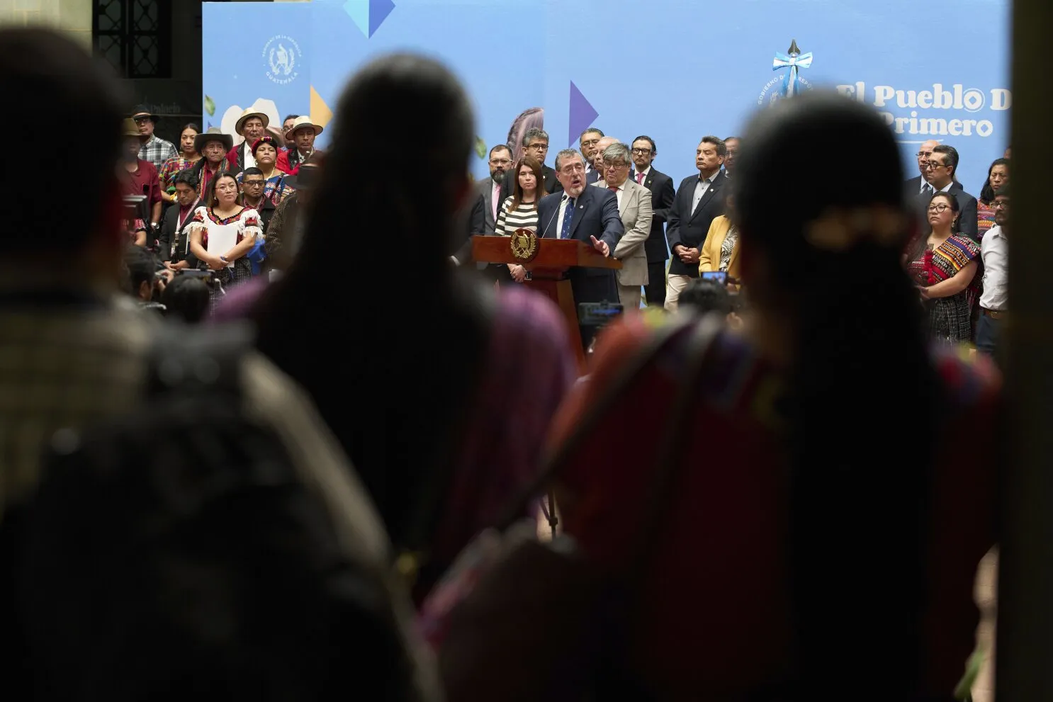 En la Conferencia del Pueblo, la primera mandataria leyó una declaración del presidente Bernardo Arévalo en la que denuncia que «las poderosas fuerzas de crimen y corrupción de Guatemala siguen atacando a las fuerzas democráticas en la sociedad y en el Gobierno, esta vez criminalizando a los pueblos indígenas por su decidida defensa de la democracia en 2023”.