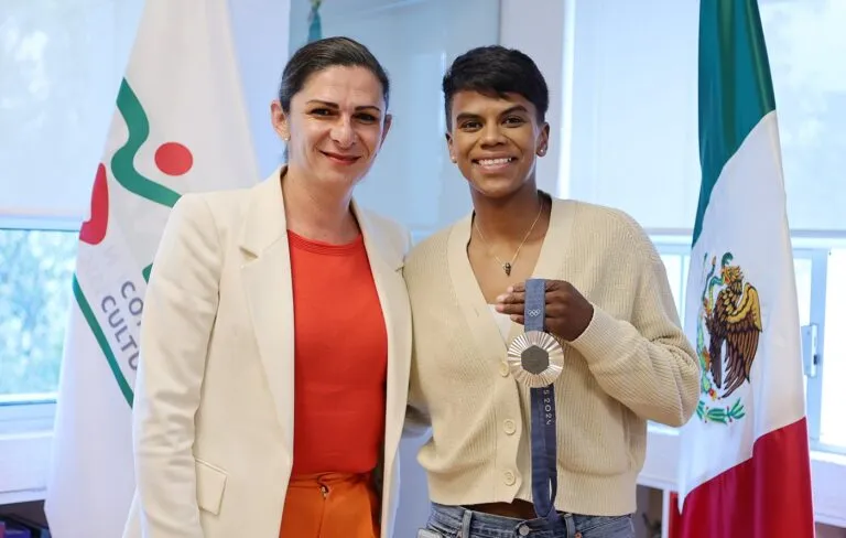 La seleccionada nacional de judo, Prisca Awiti Alcaraz, y su entrenador Jorge Luis Atencio, visitaron a la directora general de la Comisión Nacional de Cultura