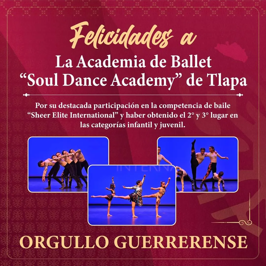En el rubro cultural, desde el corazón de la Montaña, en Tlapa, la destacada Academia de Ballet “Soul Dance Academy” se trasladó a Guadalajara, Jalisco para participar en la competencia de baile “Sheer Elite International”, en donde logró posicionarse en los primeros lugares.