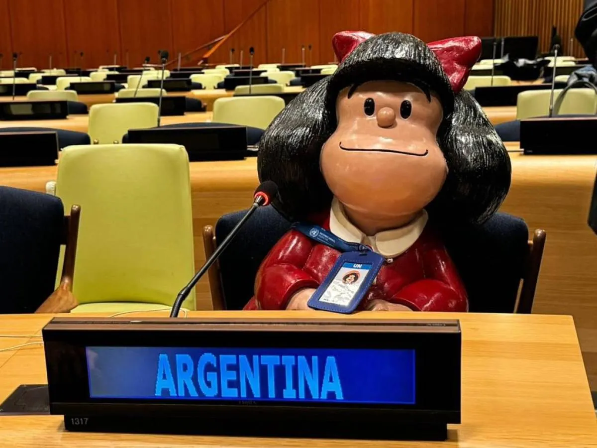 Una estatua de Mafalda, personaje de dibujos animados argentino creado por el humorista gráfico Quino, visitó este lunes 25 de noviembre las instalaciones de la Organización de las Naciones Unidas (ONU) para convertirse en intérprete de las Naciones Unidas.