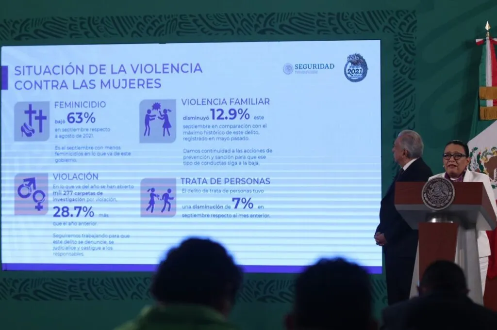 La secretaria Rosa Icela Rodríguez Velázquez presentó resultados de los delitos violentos en contra de las mujeres, cuyo trabajo se realiza de manera coordinada y con toda la capacidad institucional del Gobierno de México para que haya cero impunidad al tiempo que la sociedad debe denunciar este tipo de conductas.