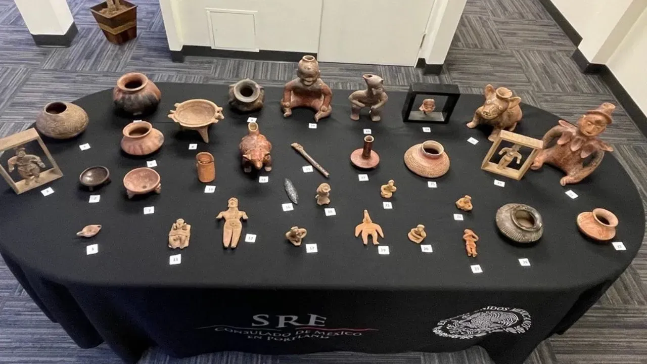 La Secretaría de Relaciones Exteriores (SRE), en coordinación con la Secretaría de Cultura federal y el Instituto Nacional de Antropología e Historia (INAH), recuperó 32 piezas arqueológicas entregadas voluntariamente al Consulado de México en Portland, Oregón, por la ciudadana estadounidense Marylou Morton.