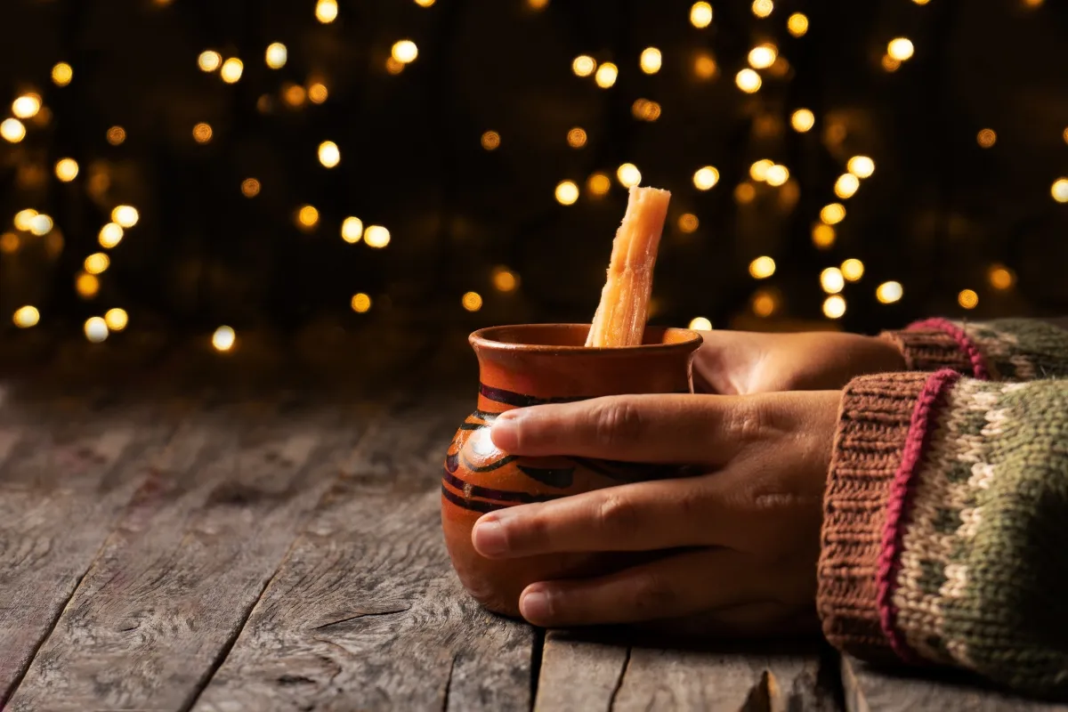 Traditional mexican hot christmas punch also called "ponche" with fruits