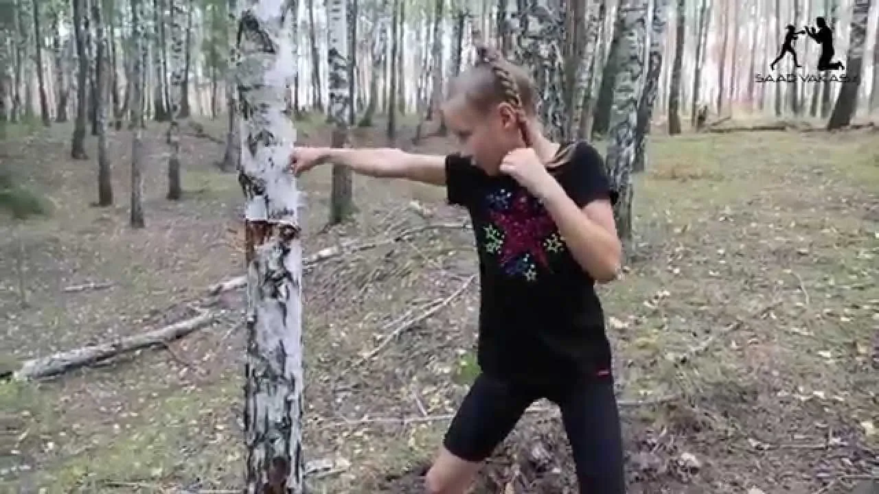 Está claro que ni el aspecto ni la edad determina el grado de fuerza. Así lo demuestra Evinka usando árboles como ‘rivales’. No cabe duda de que la joven tiene un talento innato para la lucha y su padre, Rustram Saadvakass, se dio cuenta muy pronto.