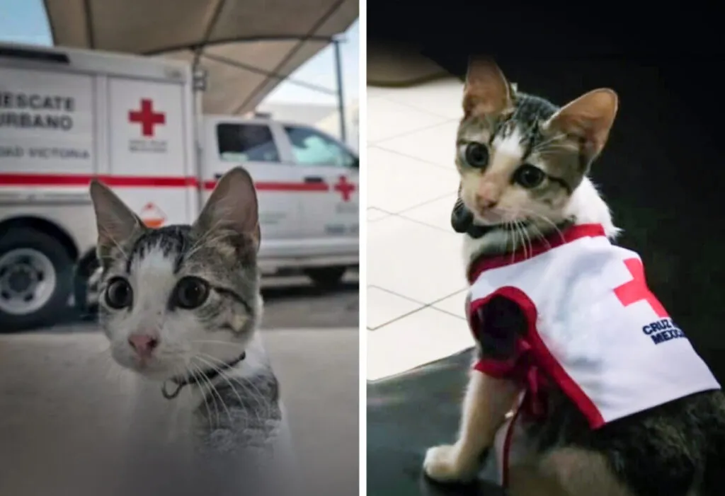 La Cruz Roja Mexicana en Ciudad Victoria sumó recientemente a un integrante inesperado que ha transformado su dinámica diaria: un pequeño gatito rescatado llamado Urgencio.