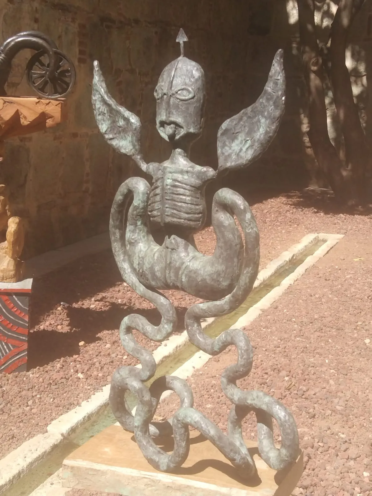 Luego, los combinó, moldeó y ensambló, utilizando técnicas tradicionales y contemporáneas, para crear piezas que evocan formas humanas, animales y símbolos culturales.