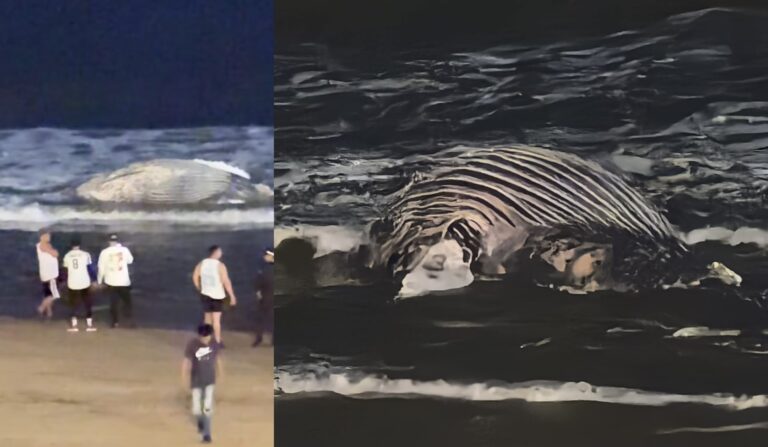 Sepultan a ballena muerta en playa de Mazatlán
